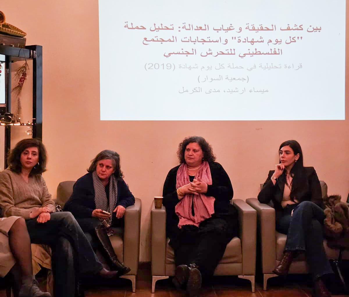 كما عرضت المحامية ميساء إرشيد، ورقة بعنوان: "بين كشف الحقيقة وغياب العدالة: تحليل حملة كل يوم شهادة"، والتي ستصدر عن برنامج الدراسات النسوية في مدى الكرمل تناولت فيها الإشكاليّات القانونيّة والأخلاقيّة والسياسيّة المرافقة لحملات كشف الشهادات، في ظلّ منظومات قضائيّة ومجتمعيّة لا تضمن دائمًا إنصافًا فعليًّا للمعتدى عليهن وللمتحرش بهن.