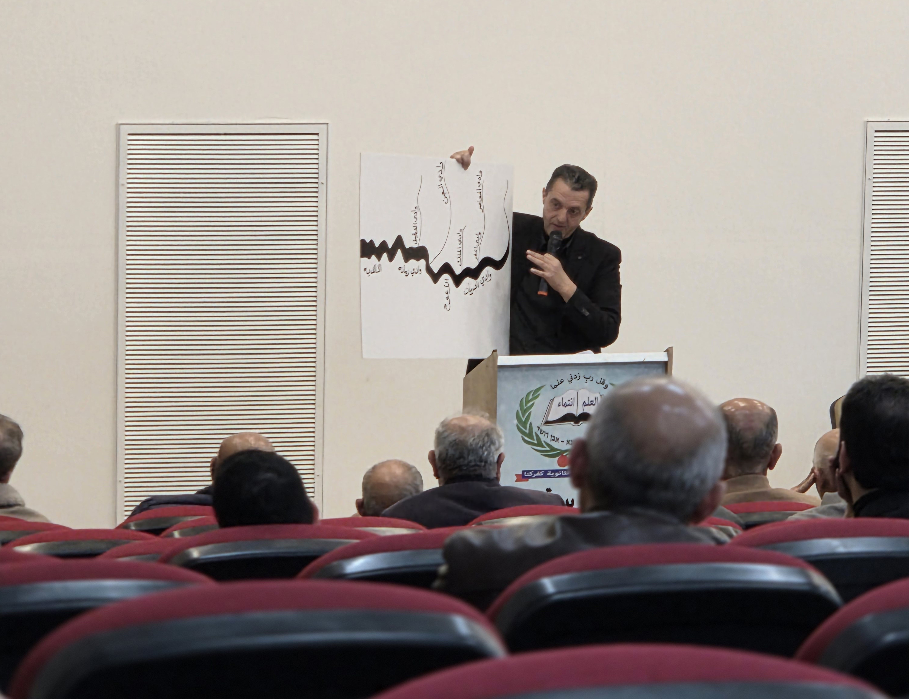 قدّم الباحث د. عامر دهامشة مداخلة استعرض فيها الكتاب بوصفه قراءة نقديّة وأدبيّة في أسماء البلدات والمعالم الطبيعيّة العربيّة-الفلسطينيّة حتى ما قبل عام 1948 وما بعده. أشار دهامشة إلى أن الكتاب يبحث في معاني ومضامين أسماء البلدان والمعالم الطبيعيّة في المجتمع العربي-الفلسطيني، ويكشف عن الأسباب والظروف التي أدّت إلى ولادة هذه الأسماء كما تجلّت في القصص المكانيّة والتراثيّة والتفسيرات الشعبيّة. من خلال النظر إلى الأسماء كمنظومة وكمجموعة، رأى دهامشة أنّ الكتاب يكشف عن سرديّة المكان، وعن الرسالة التي تحملها الأسماء، ويلقي الضوء على مصطلح "جغرافيّة القرية العربيّة"، وبالتالي يقدّم إطارًا نظريًّا لكلّ من يرغب في دراسة أسماء الأماكن في نطاق القصّة والأدب. كما أشار إلى أنّ الكتاب يقوم على محاور مترابطة تشمل تحليل دلالات الأسماء وسرديّاتها التاريخيّة والثقافيّة بوصفها دوالّ رمزيّة، الكشف عن الرسالة الثقافيّة والأيديولوجيّة الكامنة في الأسماء العربيّة-الفلسطينيّة، التمييز بين موضوعات الأسماء وأنواعها بما يشمل أسماء البلدات والمعالم الطبيعيّة والفروق بين الأسماء الذكوريّة والأنثويّة. وفي نهاية مداخلته تناول ظاهرة عبرنة الأسماء وإشكاليّاتها اللغويّة والجغرافيّة وما تعكسه من تحوّلات في هويّة المكان وأنظمة تسميته.