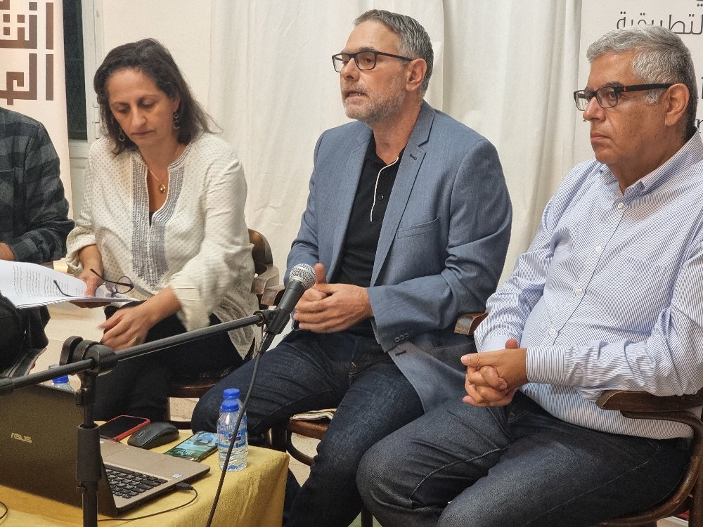 أدار النّدوة الصّحافي أحمد دراوشة، وأشار إلى التّفسيرات التي يُقدّمها الطرح الموجود في العناوين المُتناولة، وكيفيّة مساهمتها بشكل كبير جدًا في تفسير ظاهرة العنف والجريمة الموجودة الآن، وتقديم تفسير نقدي للخطاب السّياسي العربي وكيفيّة تعامله مع غياب المدينة ومشاريع بناء المؤسّسات القوميّة والوطنيّة، انطلاقًا من النّكبة في مرحلة حسّاسة لم نُكمِل بها مرحلة الحداثة، وغياب المدينة الفلسطينيّة وتحوّل الفلسطينيّين للحياة على الهامش.